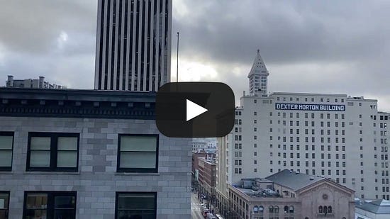 Last week I wrote about the old Chamber of Commerce Observatory. Here’s a link to a video I made from another great downtown location with a view. It is the public viewing space on the Seventh Floor Patio of the Fourth and Madison Building, one block north of the former Observatory. The elevator to reach it is in the southwest corner of the main lobby floor, sort of hidden away. Ask at the front desk if you need help.